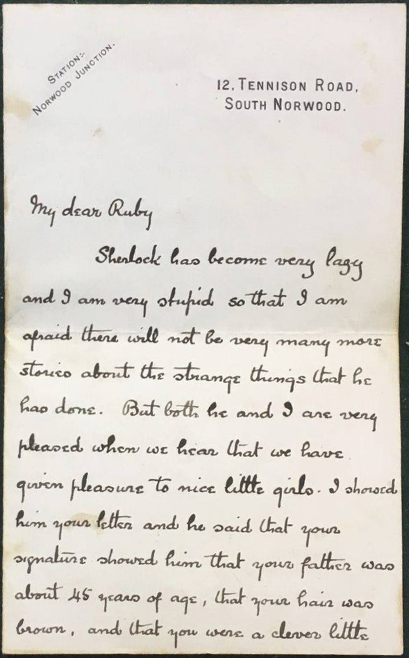 Conan Doyle's letter to Ruby ran as follows: